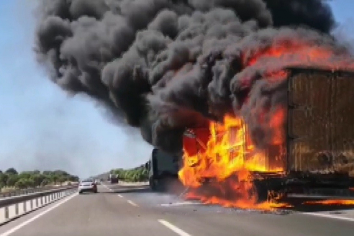 Yangın, kısa sürede büyüyerek tırı sararken, etrafa saçılan kağıt rulolar sebebiyle alevler, otoyol kenarında bulunan otluk alana da sıçradı.