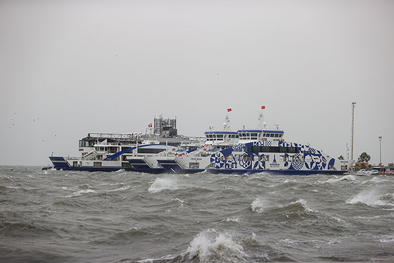 Açıklamada, "Saat 15.15 itibarıyla olumsuz hava ve deniz koşulları sebebiyle araba vapuru ve yolcu gemisi seferleri geçici süreyle iptal edildi." ifadesi kullanıldı.