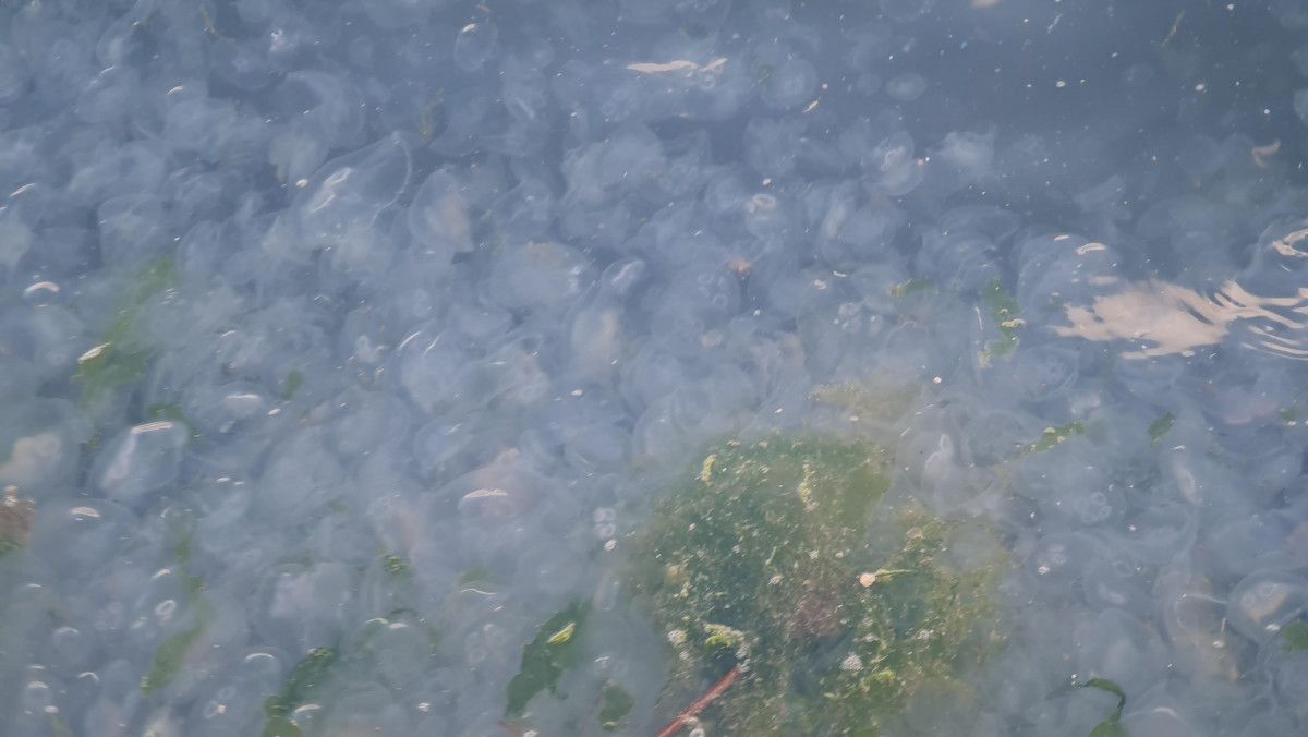 Körfez ilçesi Tütünçiftlik sahili binlerce denizanasıyla kaplandı. Sahilde yaşanan kirlilik ise kötü bir görüntü oluşturdu.