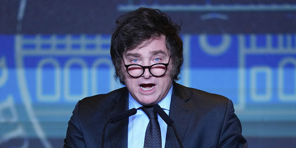 Yemin töreni, Başkent Buenos Aires'teki Ulusal Kongre'de düzenlenirken, Milei başkanlık kuşak ve bastonunu önceki Devlet Başkanı Alberto Fernandez'in elinden aldı.
