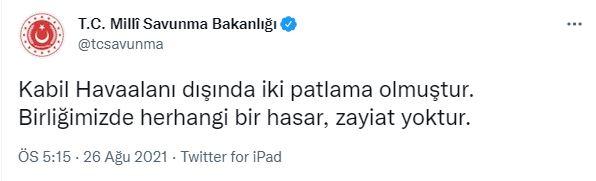 MSB, "Kabil Havaalanı dışında iki patlama olmuştur. Birliğimizde herhangi bir hasar, zayiat yoktur." açıklamasında bulundu.