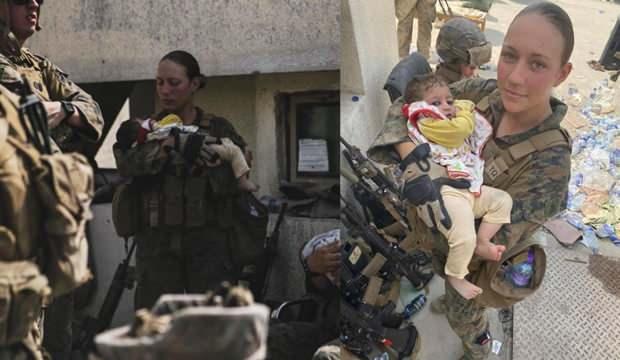 Amerikan basını, Deniz Piyadesi Nicole Gee'nin tahliyeler sırasında aktif rol oynayan askerlerden biri olduğunu yazdı. Paylaşılan fotoğraflarda Gee'nin, Afgan bebeklere baktığı görülüyor.