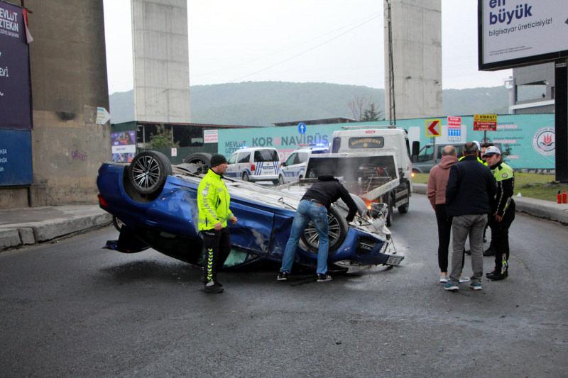 Araç refüje çarparak takla attı. Kazada araç içerisinde bulunan iki kişi yaralandı. Vatandaşların ihbarıyla olay yerine itfaiye, sağlık ve polis ekibi sevk edildi. Yaralılar kendi imkanları ile otomobilden çıktı. Araç sürücüsü Emrah Özer ile Neslihan Bozkurt Tali ambulansla hastaneye kaldırıldı.
