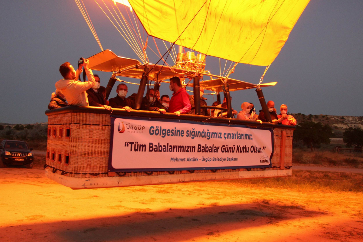 Ürgüp Belediyesi tarafından Babalar Günü dolayısıyla hayatında ilk kez balona binecek olan 10 baba için Kapadokya'da balon turu düzenlendi. Ürgüp Belediye Başkanı Mehmet Aktürk ve beraberindeki babalar bu sabah gün doğumunu gökyüzünde karşılayarak Babalar Günü'nü gökyüzünde kutladı.