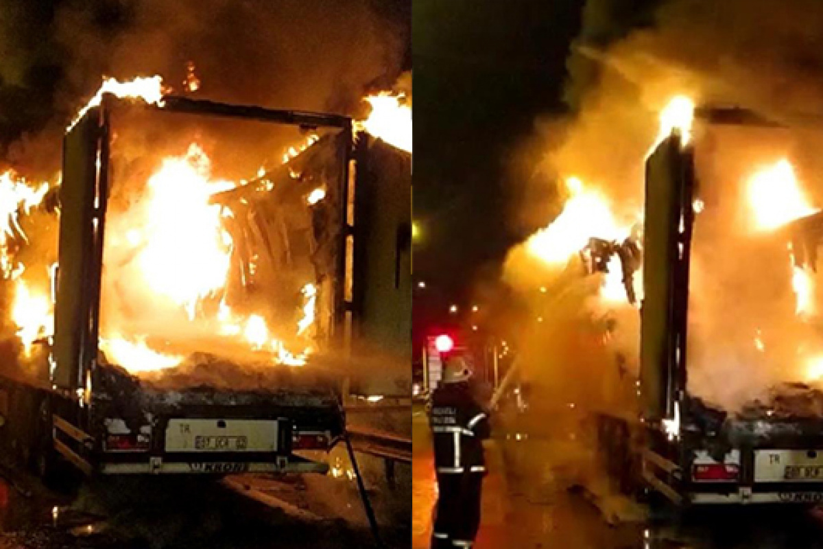 Yangın, TEM Otoyolu Kocaeli geçişi İzmit ilçesi Alikahya mevkiinde meydana geldi. Edinilen bilgiye göre, Göksel E. idaresindeki 07 DDY 50 plakalı Mercedes marka tır Çayırova ilçesinden aldığı kargoları götürmek üzere Antalya'ya doğru yola çıktı.