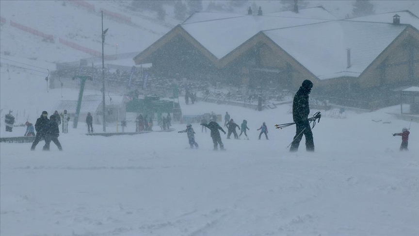 Kayak merkezine gelen tatilciler, pistlerde kayak ve snowboard yaparak karın tadını çıkarıyor.