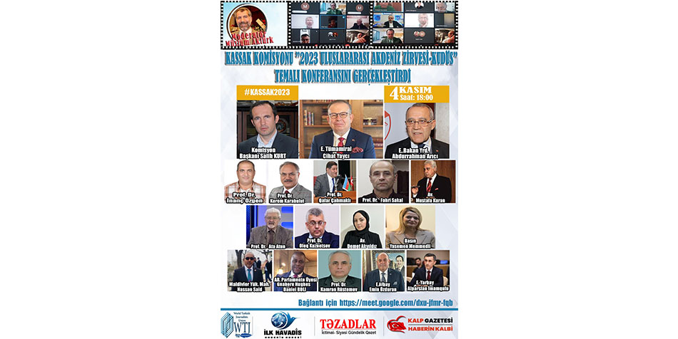 Moderatörlüğünü Gazeteci-Yazar Müslüm Aktürk’ün yaptığı, yurt içi ve yurt dışından önemli isimlerin katıldığı video konferansta “Akdeniz, Gazze-Kudüs ve Savaş Suçları Mahkemesi” başlıklı üç başlık ele alındı.