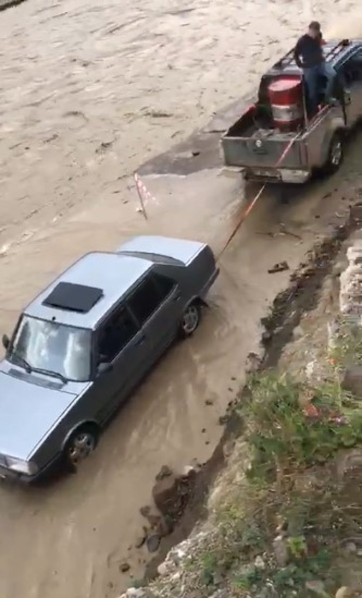 Çayın kenarında bulunan bazı elektrik direkleri de yıkılırken, köyler elektriksiz kaldı. Suların yükselmesi sebebiyle yolda bazı araçlar da mahsur kaldı. Sel sularından geçemeyen bir aracı çevrede bulunan vatandaşlar fark etti.