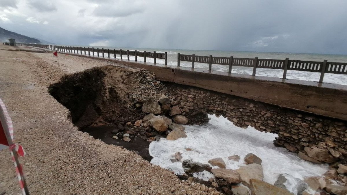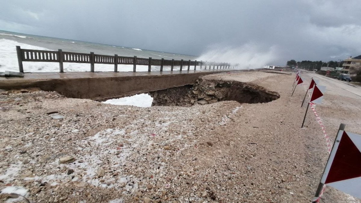Sahil yolunun 17'nci kilometresinde, Gebeş Mahallesi mevkisinde 4 noktada çökme meydana geldi. İhbar üzerine Karayolları ekipleri, çökme oluşan alanlarda önlem aldı.