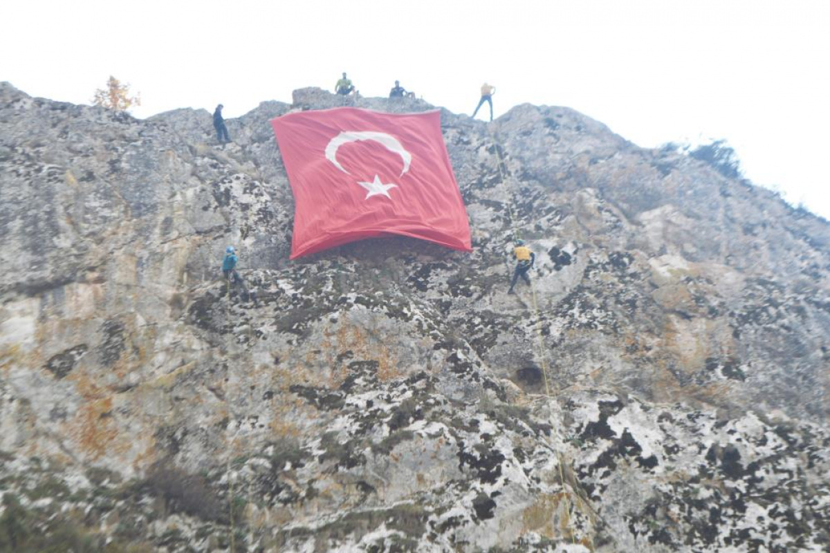 Tavşanlı ilçesi Göbel Termal merkezindeki kayalıklara dağcılar tarafından dev Türk bayrağı asıldı. Bir gece kamp yapan gruba, Cumhuriyet'in kuruluşunun 98'inci yıldönümü dolayısıyla Kanyon Bursa ekibi, Tavşanlılı dağcılar ve Cross ekibi de katılarak, yüksek kayalıklardan iniş esnasında dev Türk bayrağı açıldı.