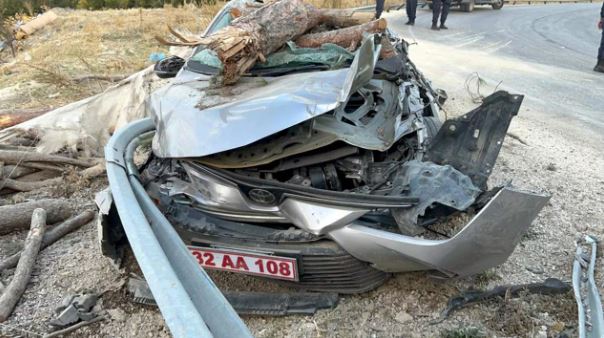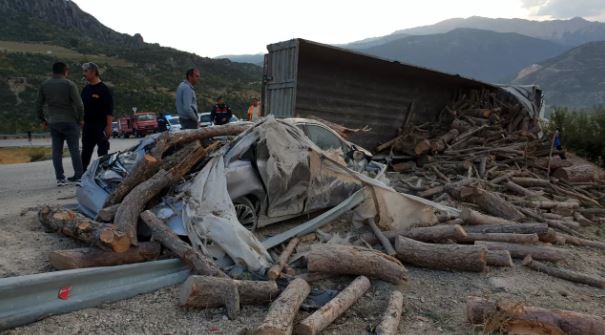 TIR’ın dorsesinde yüklü odunlar makam aracının üzerine devrildi. Makam aracının hurdaya döndüğü kazada, aracı kullanan Kaymakam Kantilav’ın koruma polisi Adem Kaban yaralandı.