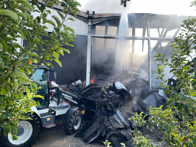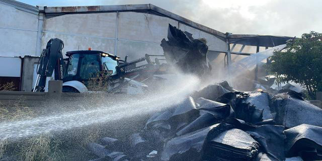 Büyük çaplı hasara neden olan yangında fabrikanın bazı kısımları çöktü. Ekiplerin soğutma çalışması sürüyor.
