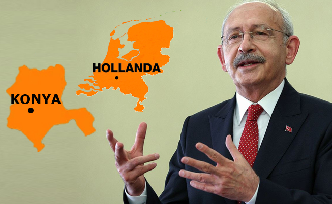Kemal Kılıçdaroğlu, "Konya, Hollanda’dan büyük bir ülke. Toprak olarak Hollanda’dan büyük bir ülke." ifadelerini kullandı.