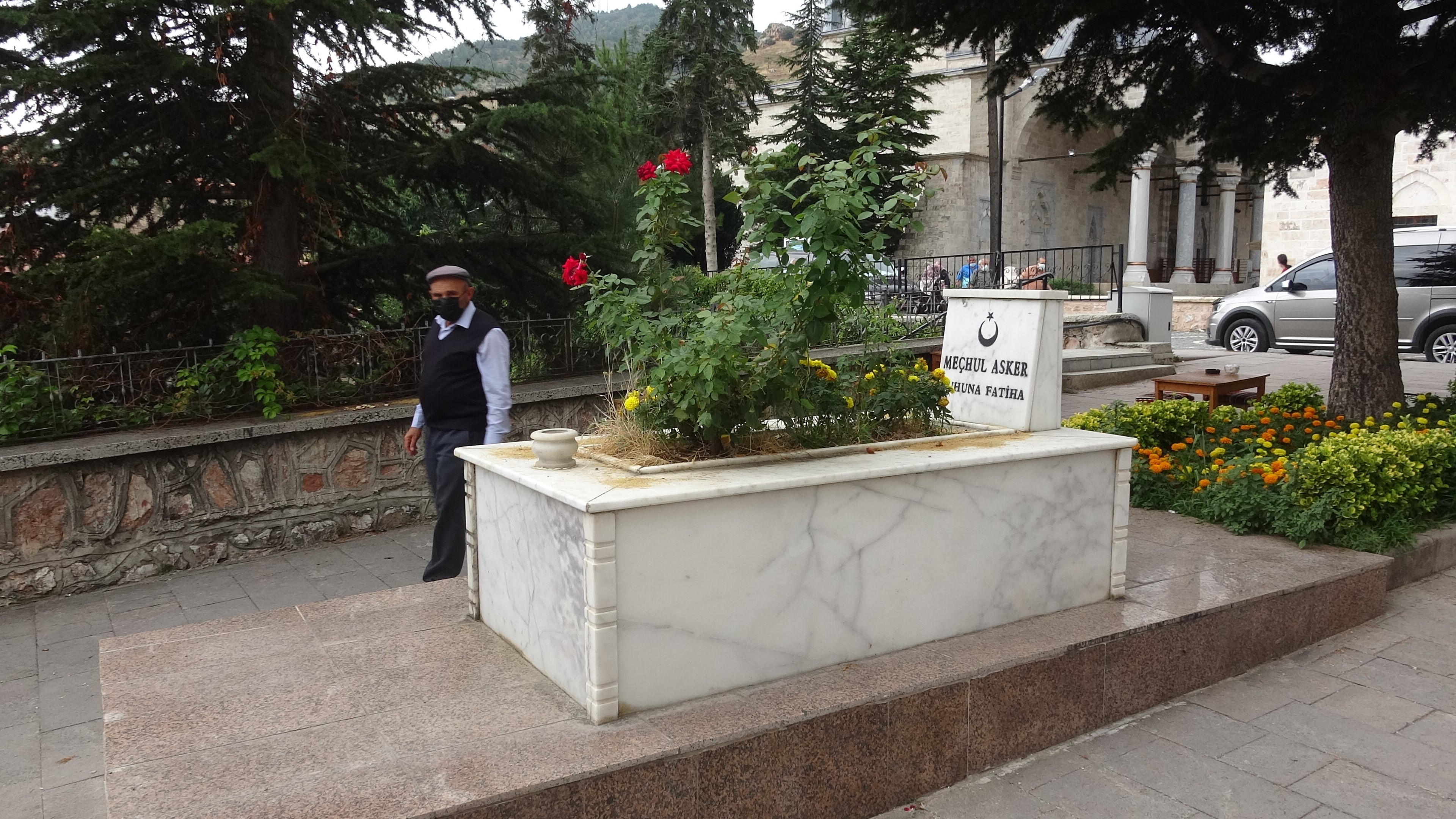 Mezar taşına ‘Meçhul Asker' ismi yazıldı. Yoldan geçenlerin dua ettiği mezar dikkatleri çekiyor. Emekli Öğretmen Ömer Faruk Aybek, halk arasında mezarla ilgili çeşitli bilgiler dolaştığını belirterek, “Bundan 50-60 yıl önce yol çalışmalarında mezarın kaldırılmak istenirken iş makinesinin bozulduğu, bıçağının kırıldığı söyleniyor. Şehit mi?, Gazi mi? Mübarek bir insan mıdır? Bilemiyorum. Mezarda yatana saygıdan dolayı yolu dar bırakarak mezarı korumuşlar. İnsanlarımızda ziyaret ederek dua ediyor” dedi.
