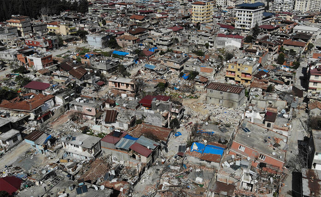 Öte yandan, depremle birlikte büyük yıkımın yaşandığı Emek Mahallesi'nin son hali drone ile havadan görüntülendi.