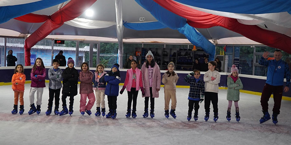 Kâğıthane Belediyesi'nin Doğal Buz Pisti'nde 6-16 yaş aralığındaki çocuk ve gençlere paten eğitimleri veriliyor. Çocuklar tesiste derslerini uzman eğitmenler tarafından alıyorlar.