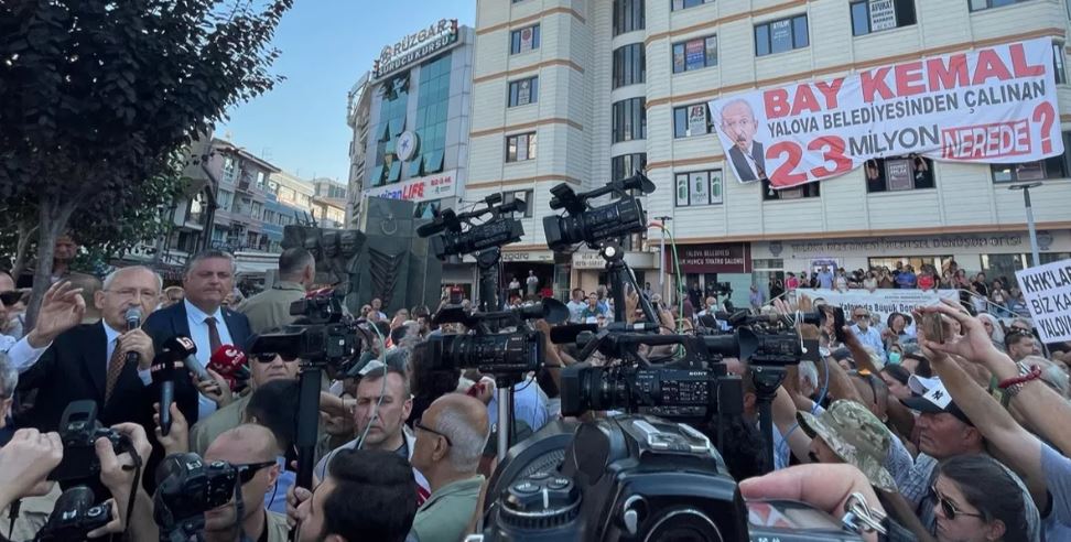 CHP Lideri Kılıçdaroğlu, “Bay Kemal Yalova Belediyesi'nden çalınan 23 milyon lira nerede?” yazılı pankartla ilgili şöyle konuştu: