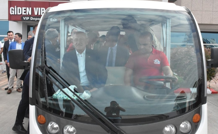 Kacır ve Kılıçdaroğlu, daha sonra golf aracına binerek etkinliklerin düzenlendiği alana girdi.