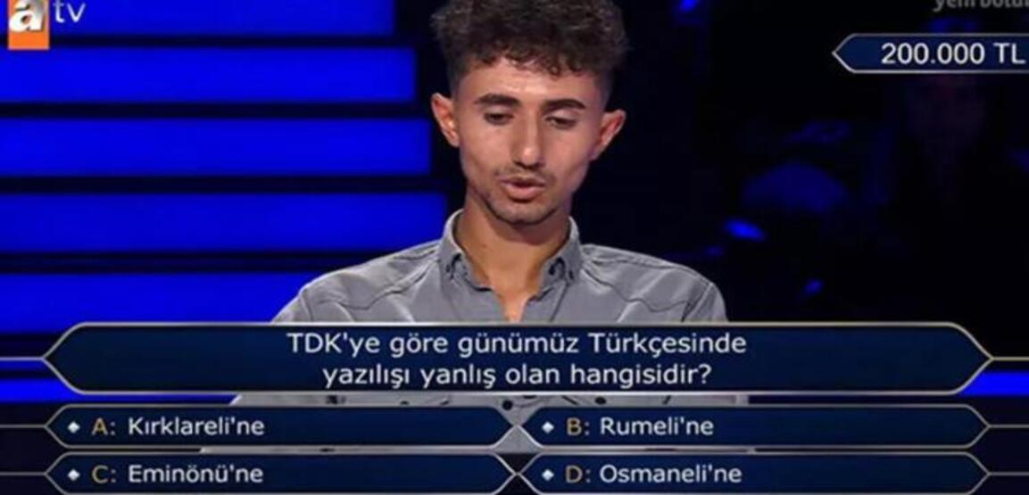 200 bin TL'lik 10'uncu soruya açtırmayı başaran yarışmacı, "kolay" olarak yorumlanan imla sorusunda takıldı.