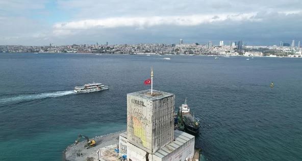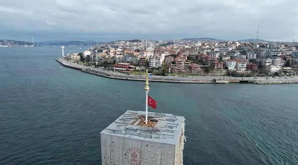 Yapılan çalışmalarla Kız Kulesi’nin üst tarafında bulunan iskelenin sökülmesinin ardından kuleye ait Türk bayrağının asılı olduğu direk ve alem ortaya çıktı.