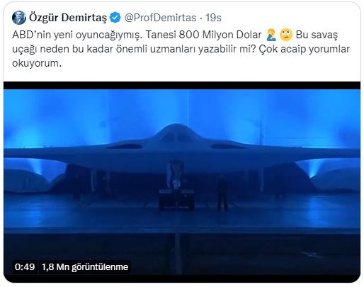 Türkiye'nin Kızılelma'yı konuştuğu dakikalarda Özgür Demirtaş ABD'nin tanıttığı B-21 uçağını paylaştı ve övgüyle söz ederken önemine dair de uzman yorumları talep etti.