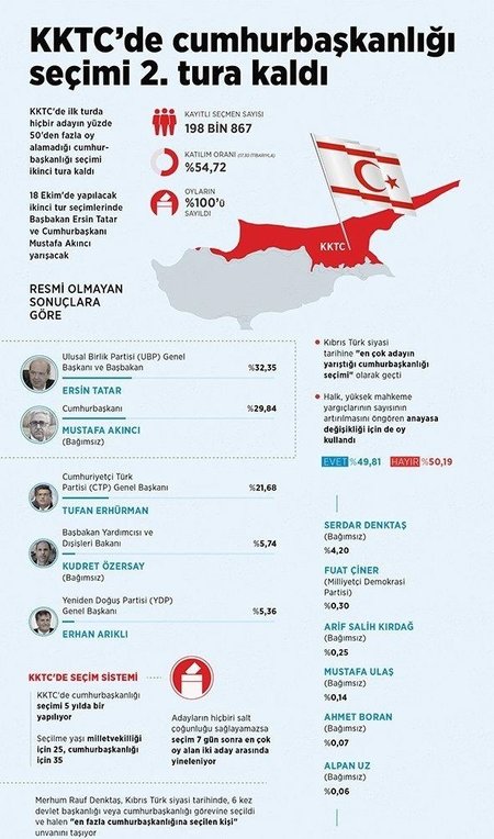 Kuzey Kıbrıs Türk Cumhuriyeti, 18 Ekim Pazar günü ikinci kez sandığa gitmeye hazırlanıyor. KKTC partilerinden Demokrat Parti (DP), Halkın Partisi (HP) ve Yeniden Doğuş Partisi (YDP) de ikinci turda hangi adayları desteklediklerine ilişkin açıklık getirdi.