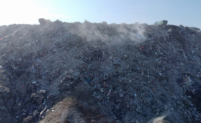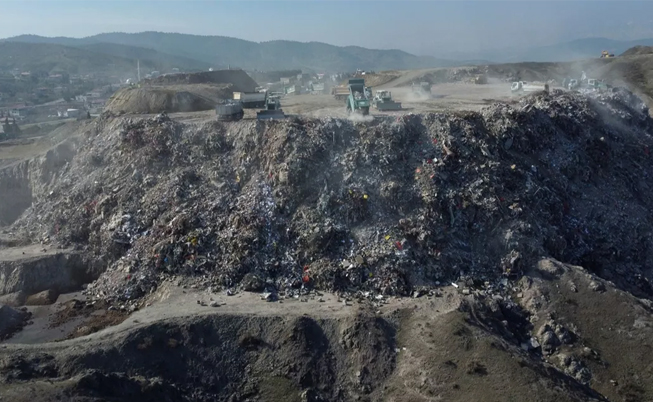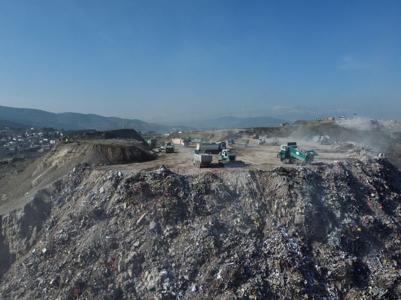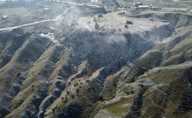 Kentte moloz döküm alanı olarak belirlenen Dulkadiroğlu ilçesine bağlı Karacasu mevkisindeki alan getirilen molozlar iş makineleriyle bu bölgeye seriliyor.