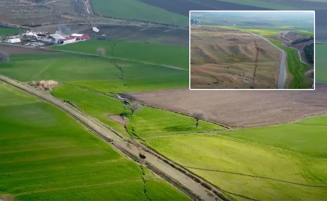 Kahramanmaraş'taki fay kırığı görüntülendi. Kahramanmaraş'ın Tevekkeli köyünde kilometrelerce uzunlukta olan kırık depremin büyüklüğünü gözler önüne seriyor.