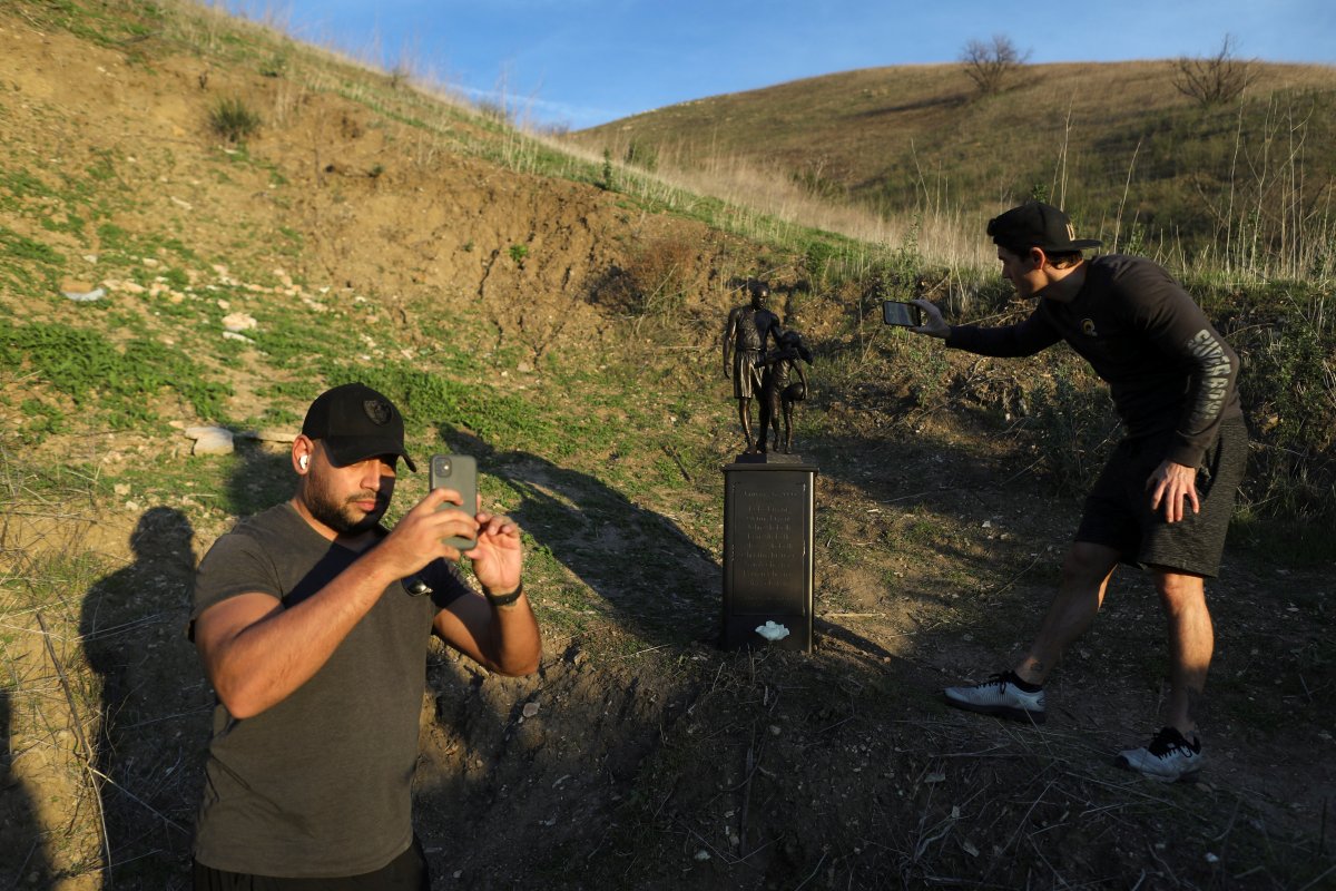 Kobe ve kızı, helikopter kazasının yıl dönümünde kaza yerine yerleştirilen bronz heykelle anıldı.