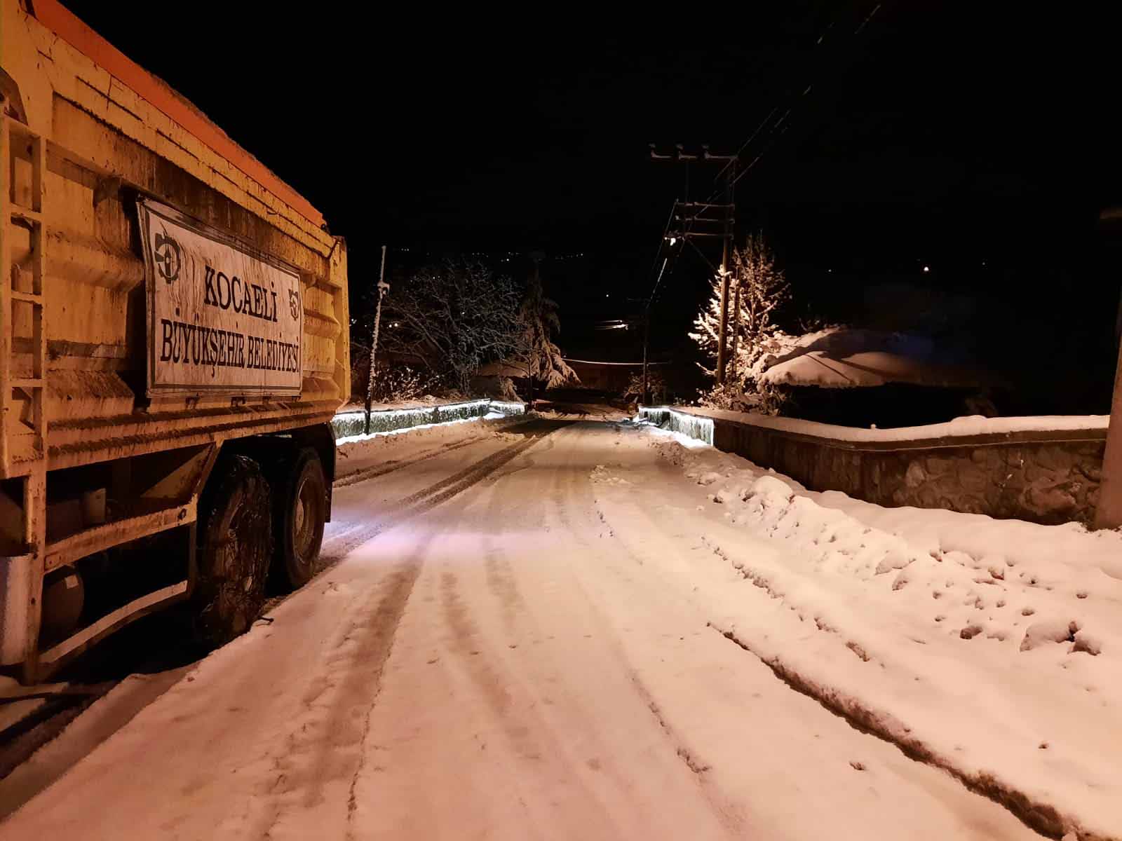 Gece ve gündüz iki ekip nöbet tutan karla mücadele ekipleri, yağan karın yolda buzlanma oluşturmaması ve araçların yolda kayarak olumsuz durumlara sebep olmaması için 24 saat kar temizleme ve tuzlama çalışması gerçekleştirdi. Kartepe Zirve Yolu, İzmit; Santral Rampası, Umuttepe, Miralay Mümtaz Caddesi, Kuruçeşme TOKİ Akpınar konutları, Gölcük İrsadiye Eriklitepe yolu, Körfez Şemsettin-Naip Kalburcu-Belen- Elmacık Radar güzergahı, Başiskele; Aytepe Diriliş Kamp Yolu, Baraj yolu-Cami Düzü-Doğantepe-Serinlik Bağlantı Yolu olmak üzere ihtiyaç duyulan tüm noktalarda yolların açık tutulması, buzlanma olmaması için çalışmalarını sürdürecek.