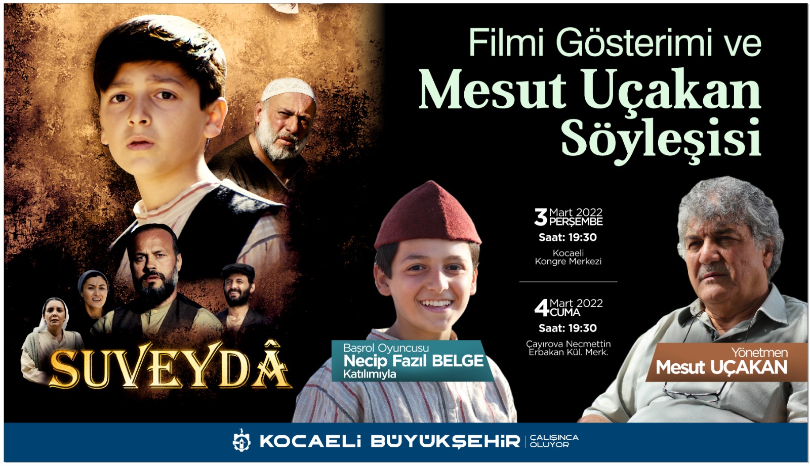 Kocaeli Büyükşehir Belediyesi, Türkiye’nin bir döneminde yaşananları ele alan Suveyda Filmi’nin gösterimini gerçekleştirecek. Gösterimin ardından filmin yönetmeni Mesut Uçakan ve başrol oyuncusu Necip Fazıl Belge söyleşi gerçekleştirecek. Suveyda Filmi Gösterimi ve Mesut Uçakan söyleşisi 3 Mart Perşembe akşamı 19.30’da Kocaeli Kongre Merkezi’nde düzenlenecek.