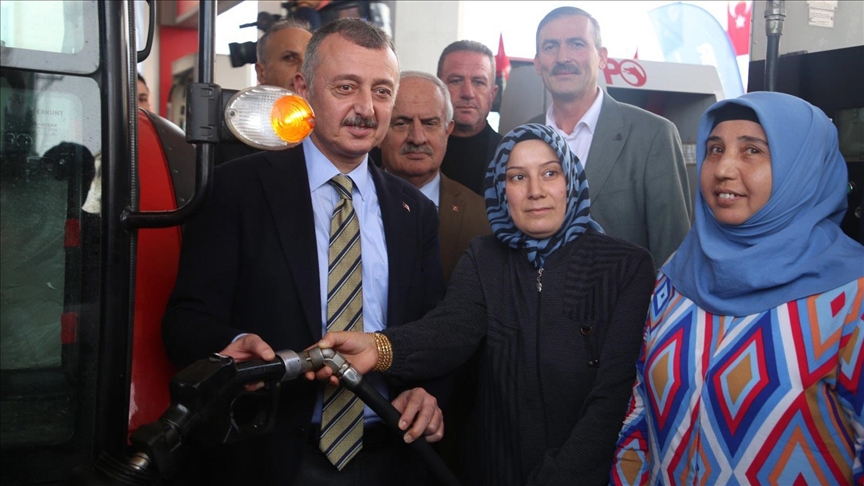 Daha sonra Büyükakın, oluşturulan konvoy eşliğinde direksiyonuna geçtiği traktörle akaryakıt istasyonuna geldi.