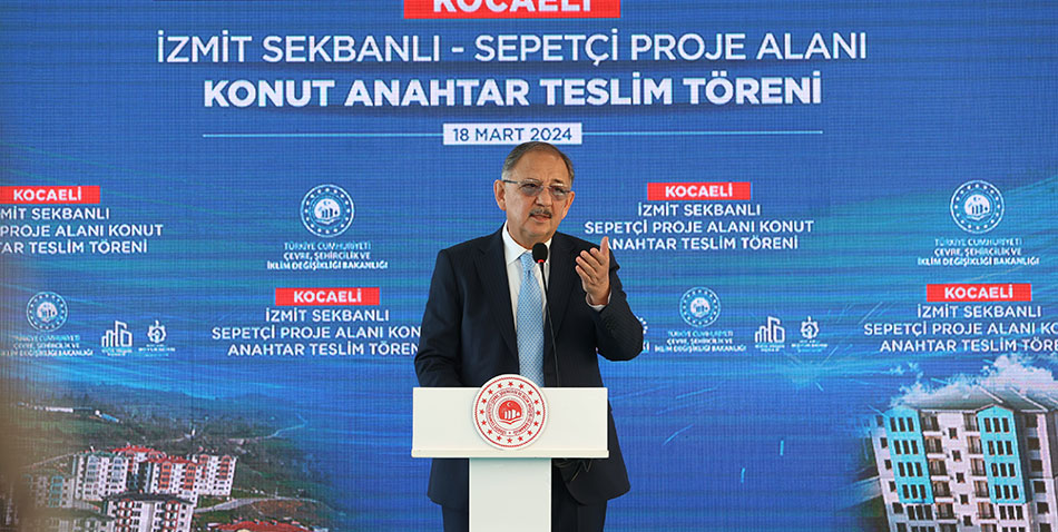 Bugün TOKİ eliyle Sekbanlı-Sepetçi Projesi kapsamında yapılan 747 konutun, vatandaşlardan gelen yoğun taleple 1 ay öncesinden teslim edildiğini kaydeden Bakan Özhaseki, “Bugün burada güzel bir hizmet yapıldı. TOKİ Başkanımız ufak tefek eksikleri olduğunu söyledi. Onlar da en kısa sürede giderilecek. Bugün 747 konut teslim edildi ama devamı gelecek. Kocaeli'mizin yedi yerinde kentsel dönüşüm çalışmalarımız, yatırımlarımız devam edecek” diye konuştu.