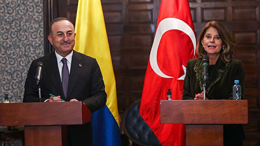 Dışişleri Bakanı Mevlüt Çavuşoğlu, resmi ziyaret kapsamında bulunduğu Kolombiya'da Devlet Başkanı Yardımcısı ve Dışişleri Bakanı Marta Lucia Ramirez ile bir araya geldi, baş başa ve heyetler arası görüşmelerin ardından ortak basın toplantısı düzenledi.