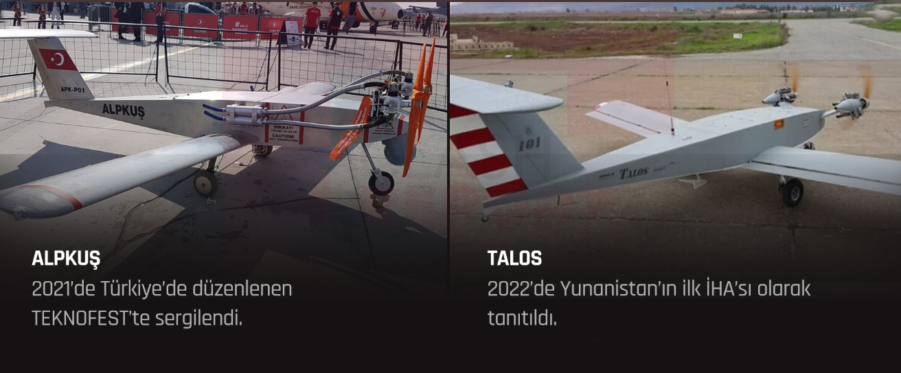 Yunanistan’ın ilk İHA'sı olarak tanıtılan Talos, Türkiye'de TEKNOFEST 2021'de tanıtılan ALPKUŞ’a benzerliğiyle dikkat çekerken bir çok sosyal medya kullanıcısı da Yunanistan’ı Türkiye’den kopya çekmekle suçladı.