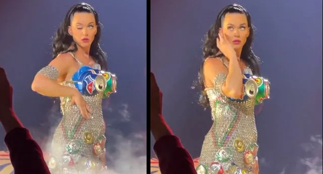 Şarkıcı, konserinde poz vermek için kameraların karşısına geçti. Payetli renkli bir elbise giyen şarkıcı poz verdiği anda, sağ gözü sarktı. Gözünü kontrol edemeyen Katy Perry, göz kapağını açmak için elini kullandı ama başarılı olamadı. 38 yaşındaki şarkıcı, sağ gözünü kontrol edemeyince "Nöbet geçiriyorum" şakası yaptı.