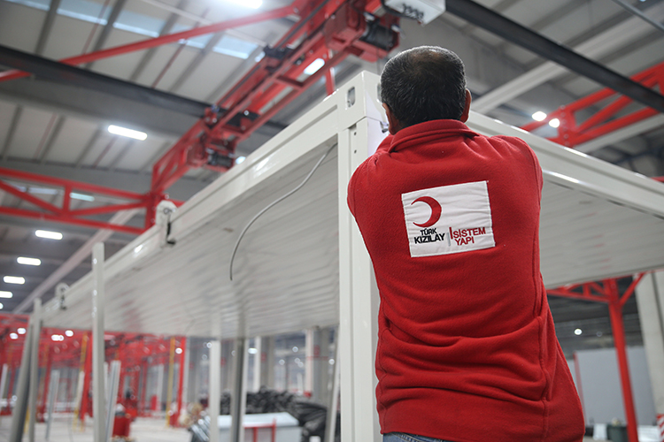 Türk Kızılay, merkez üssü Pazarcık ve Elbistan ilçeleri olan, 10 ili etkileyen 7,7 ve 7,6 büyüklüğündeki depremlerden zarar gören kentlerde faaliyetlerini aralıksız sürdürürken, Malatya'da kurulu Kızılay Sistem Yapı Fabrikası, depremzedeler için konteyner üretiyor.