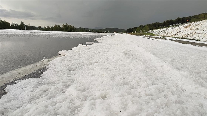 Fındık büyüklüğündeki dolu yağışı nedeniyle sürücüler hızlarını düşürdü. Kimi sürücülerin de durup fotoğraf ve görüntü çektikleri görüldü.