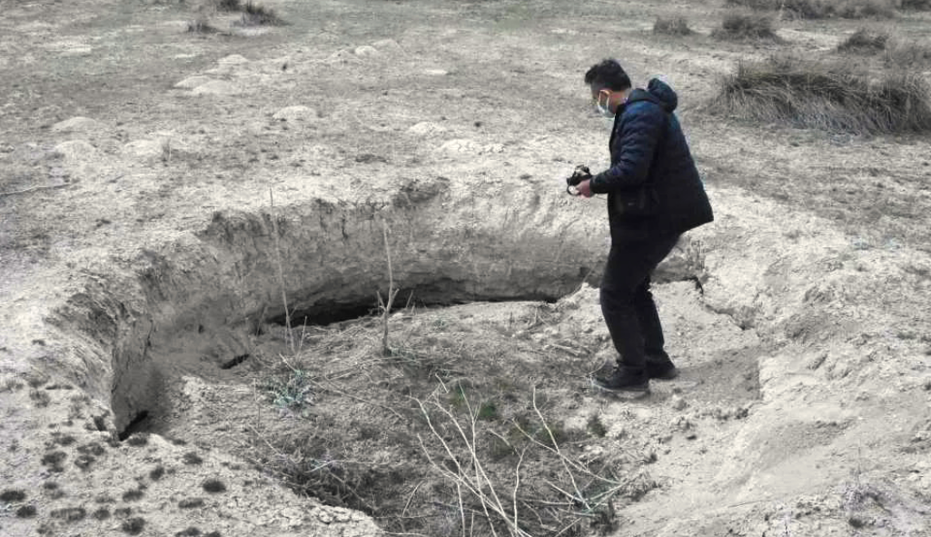 Konya'nın Karapınar ilçesinde, yer altı sularının çekilip, toprağın çökmesiyle meydana gelen ve sayıları 600'e ulaşan obrukların risk haritasının hazırlanması için çalışmalar sürüyor.