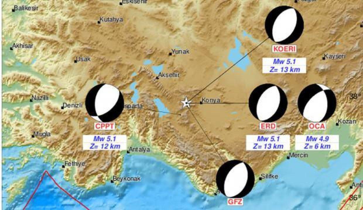 Afyon Kocatepe Üniversitesi Deprem Uygulama ve Araştırma Merkezi Müdürü Prof. Dr. Çağlar Özkaymak, dün saat 20.43'te Konya Meram'da 5.1 büyüklüğünde sığ odaklı deprem olduğunu söyledi. Depremin Afyonkarahisar ve Konya'ya bağlı yerleşim alanlarında özellikle alüvyal zeminler üzerinde orta şiddetli hissedildiğini belirten Prof. Dr. Özkaymak depremin odak mekanizma çözümlerine göre kuzeydoğu ve güneybatı uzanımı normal bir faydan kaynaklandığını söyledi.