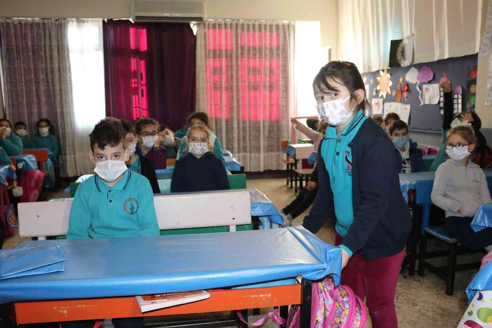 Sınıf Öğretmeni Cem Sefa Baş, “Biz daha önceki yıllarda kumaş sıra örtüleri kullanıyorduk. Bunları da pazartesiden cumaya kadar kullanıp, hafta sonu da yıkanması için ilgili veliye gönderiyorduk. Tekstil Mühendisi Ahmet Bey bana ulaştı. Nano teknolojiyle üretilmiş, gümüş iyonlara sahip ve 58 saniye içerisinde koronavirüsü ortadan kaldıran kumaştan bahsetti. Biz bunları kullanmaya başladık. Kumaş çok güzel. Hiçbir zaman leke ve kir tutmuyor” ifadelerini kullandı.