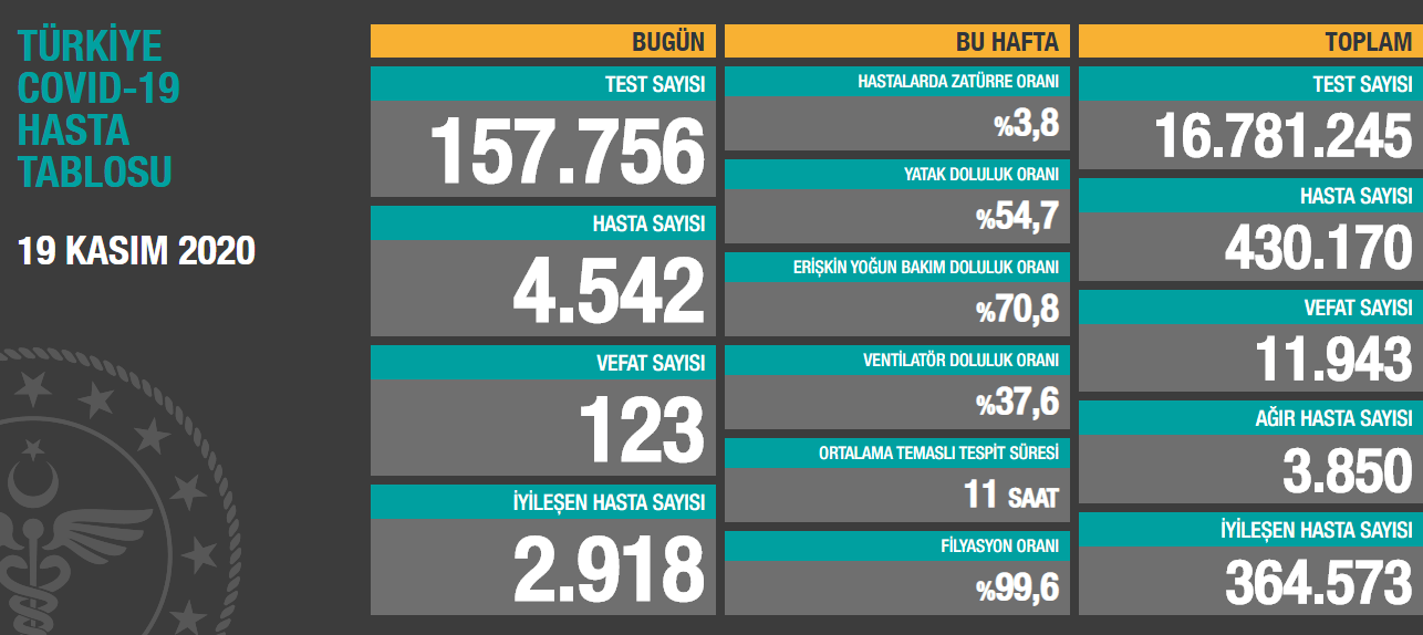 19 KASIM 2020 KORONAVİRÜS TABLOSU