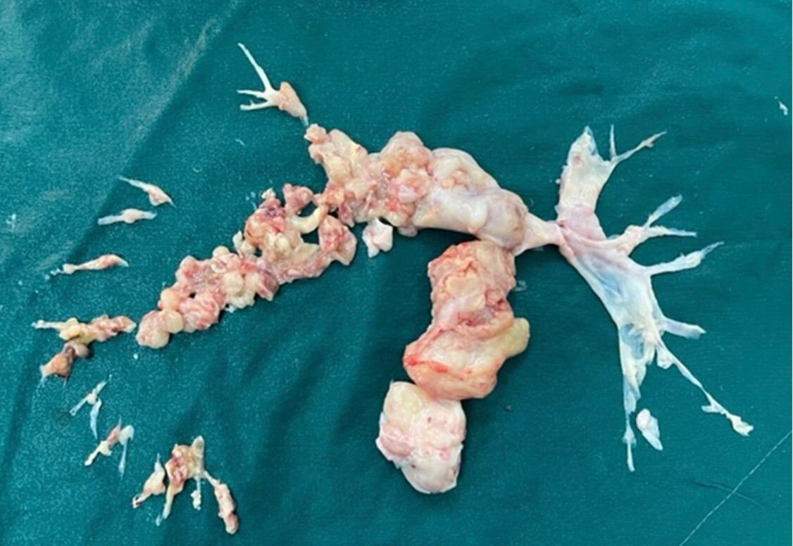 Marmara Üniversitesi Tıp Fakültesi Eğitim ve Araştırma Hastanesi Göğüs Cerrahisi Anabilim Dalı Başkanı Prof. Dr. Bedrettin Yıldızeli, "Hastamız Kovid geçirdikten sonra geçmeyen nefes darlığı şikayetiyle bir tomografi çektiriyor ve pulmoner damarlarındaki pıhtı sebebiyle bize başvuruyor. Kovid döneminde 'pulmoner emboli' dediğimiz akciğer damarlarında pıhtı, çok sık görülen bir durum oldu. Kovid-19'un kendine özgü sebeplerinden dolayı, bütün vücuttaki damarlar etkileniyor. Hastamızda da bu düşünülmüş başta. Oysa biz ameliyatta gördük ki bu pıhtı değil, 'pulmoner arter sarkomu' adını verdiğimiz, akciğer damarlarının bir tümörü. Hem akciğer damarlarını tutmuş, hem de kalp kapağında bir problem yaratmıştı. Hastamızın hem kalp kapağını (onararak) değiştirdik, hem de damarlarını temizledik. Şu an onkoloji tedavisi alacak. Burada önemli olan, Kovid-19 geçirmemiş olsaydı bu hasta muhtemelen bize de müracaat etmeyecekti. Kovid'e bağlı bir akciğer ambolisi zannedildi ama altından tümör çıktı" dedi.