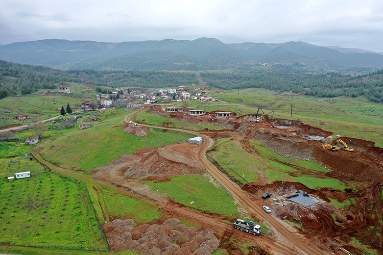Çadır ve konteynerlerin yanı sıra prefabrik evlerde de depremzedelerin ağırlanmaya başlandığı ilçe merkezinde bir yandan enkaz kaldırılırken bir yandan da kalıcı konutlar için çalışmalar yürütülüyor.