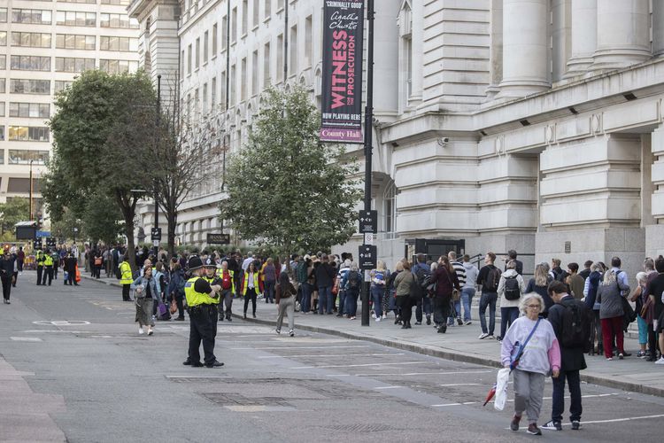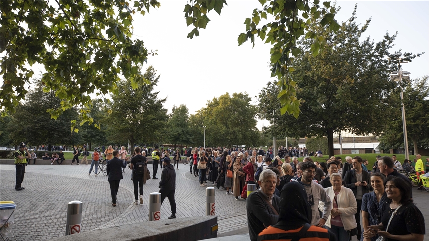İngiliz hükümet yetkilileri yaptığı açıklamada, Kraliçe'nin tabutunu ziyaret edeceklerin, havalimanlarındaki gibi çok sıkı güvenlikten geçeceği ve kalabalıkların uzun kuyruklara hazırlıklı olması uyarısında bulunmuştu.
