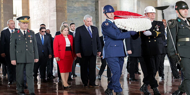 "Küba heyeti, Başkomutan Fidel Castro'nun Küba Cumhuriyeti için bir ilham kaynağı olarak tanımladığı modern Türk ulusunun kurucu babası Kemal Atatürk'e yürekten saygı ve hürmetlerini sunmak için burayı ziyaret ediyor. Küba ve Türk halkları olarak her iki ulusun da kurucularının mirası olan ortak değerlere sahibiz."