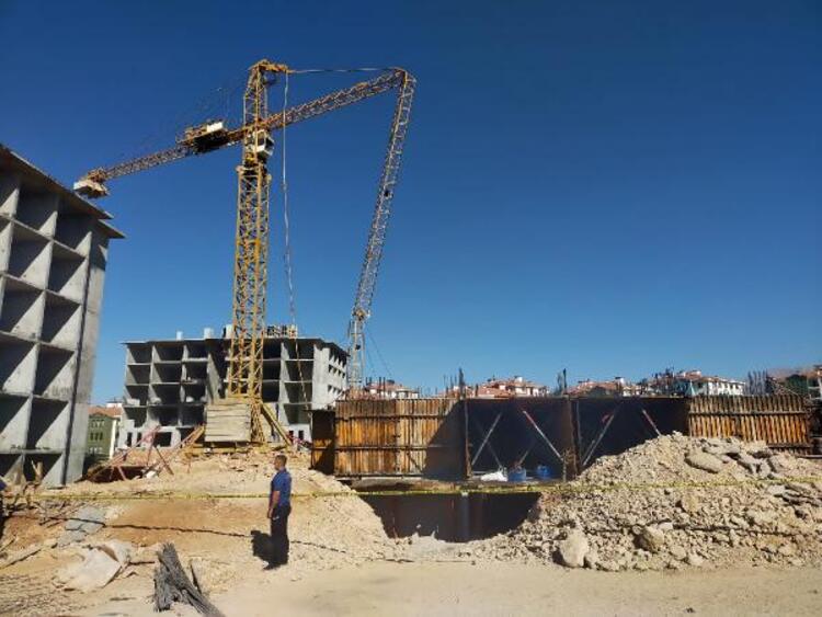 Konut inşaatında çalışma yapan kule vincin bomunun bir kısmı kırılıp, işçilerin üzerine düştü.