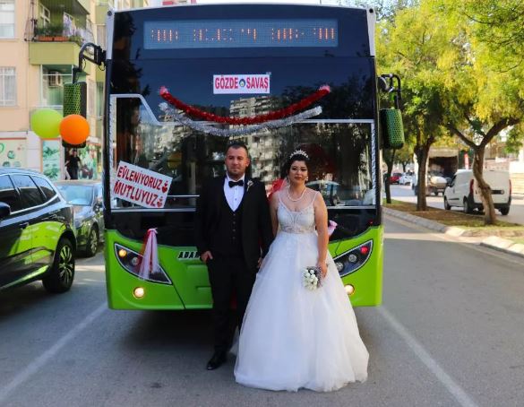 Çift, Adana Büyükşehir Belediye Başkanı Zeydan Karalar’dan izin alarak, kullandıkları otobüsü gelin arabası yaptı. Genç çift, süslettikleri otobüsle önce kuaföre ardından fotoğraf çekimine gitti. Oradan da çift, konvoy eşliğinde düğün salonuna geçti. Gelinlikle şoför koltuğuna oturan Gözde Altun’u gören vatandaşlar şaşkınlıklarını gizleyemedi.