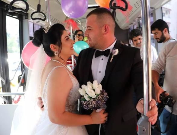 Belediyenin 5 yıllık şoförü 30 yaşındaki Savaş Yaşlak ile 30 yaşındaki şoför Gözde Altun, 2 sene önce tanıştı. Çift, 2 yılın ardından dünya evine girmeye karar verdi. Altun çifti, gelin arabası olarak da tanışmalarına vesile olan belediye otobüsünü kullanmayı tercih etti.