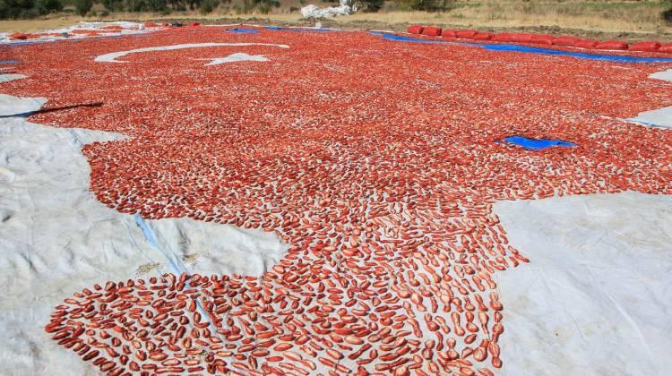 Beşik köyünde düzenlenen tarla günü etkinliği kapsamında kadın işçilerin yörede üretilen kurutmalık domatese dikkat çekmek amacıyla kurutmalık domateslerden yaptıkları dev Türkiye haritası büyük ilgi gördü.